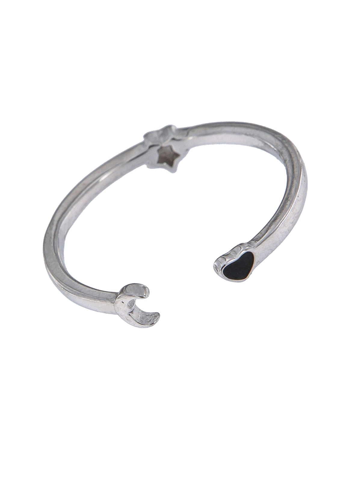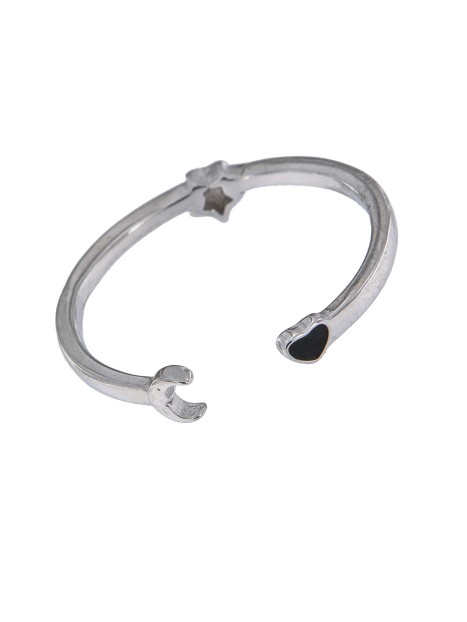 Anillo de plata reversible decorado en un lado con una estrella y en el otro lado con una luna y un corazón negro en sus extremos en Plata Primer'a de Ley.