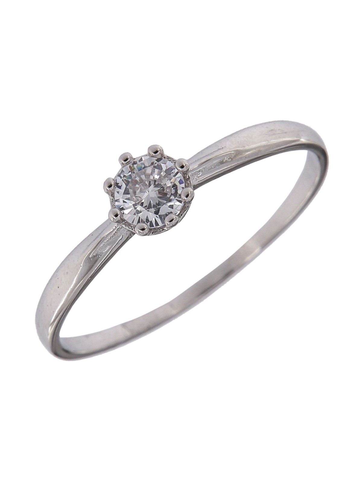 Anillo de plata solitario con circonita blanca en chatón con ocho garras en su interior de plata de 925MM .