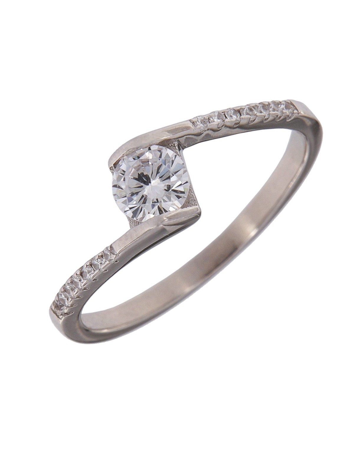 SOLITARIO DE PLATA EN FORMA DERIVADA CON UNA CIRCONITA CUADRADA CENTRAL