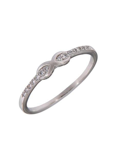 Anillo en forma de infinito de plata decorado con circonitas blancas en su interior, de manera ajustable de 925MM .