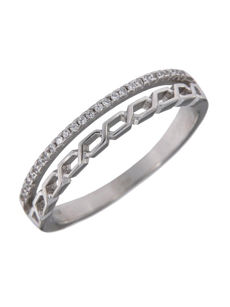 Precioso Anillo Doble con circonitas en Plata de Primera de Ley. COMPOSICIÓN Material: Plata de Ley 925 Medidas: Del número 10 al 18 Acabado: Bañado en Rodio