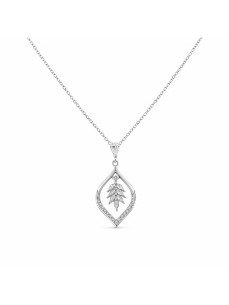 Colgante inspirado en la naturaleza con diseño de hoja y circonitas brillantes.