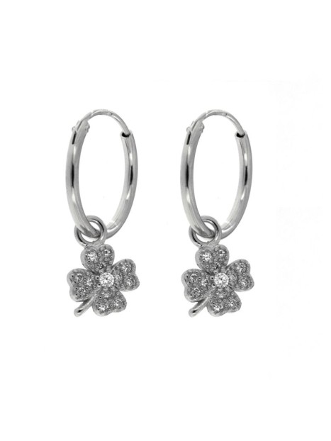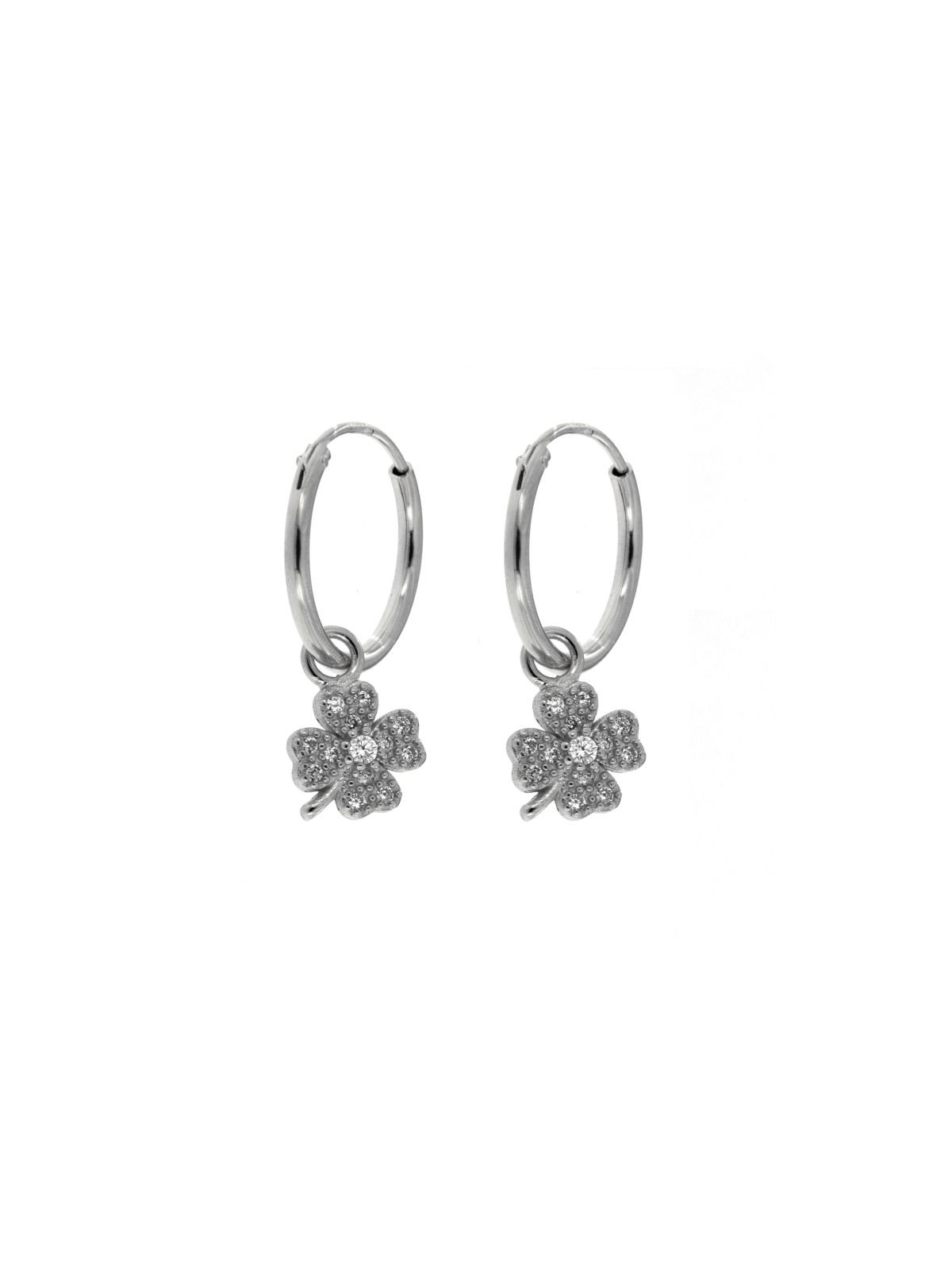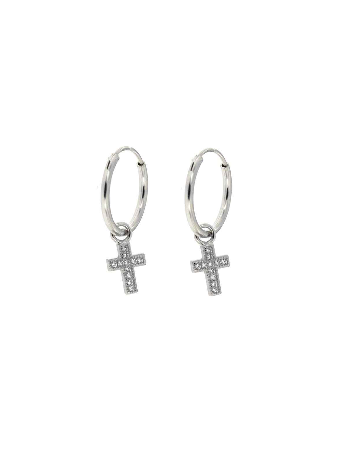 Conjunto formado por 12 pares de pendientes de aro en plata, que combina modelos lisos y modelos con circonitas, con motivos decorativos de infinito, pluma, estrella y luna, así como diseños con circonitas en formas de trébol, estrellas y cruces.