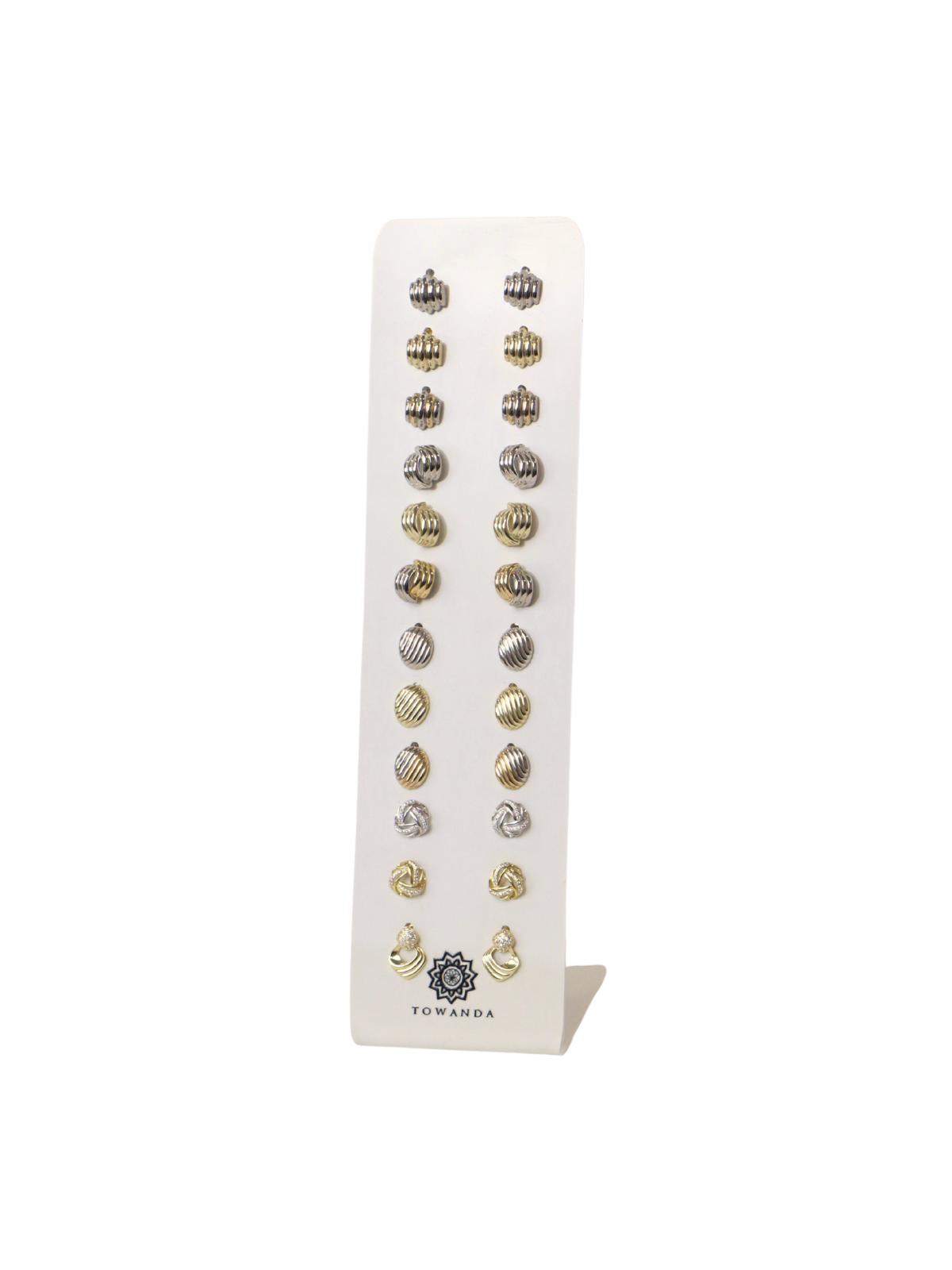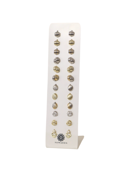Este expositor contiene 12 pares de pendientes con cierre de presión.