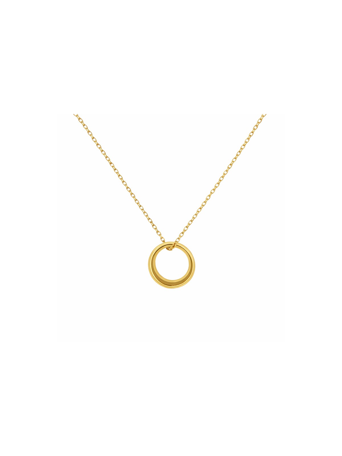 Colgante de plata de ley 925 dorado con diseño de círculo clásico pulido. Una pieza sencilla y sofisticada que simboliza continuidad y elegancia, perfecta para combinar con cualquier estilo.