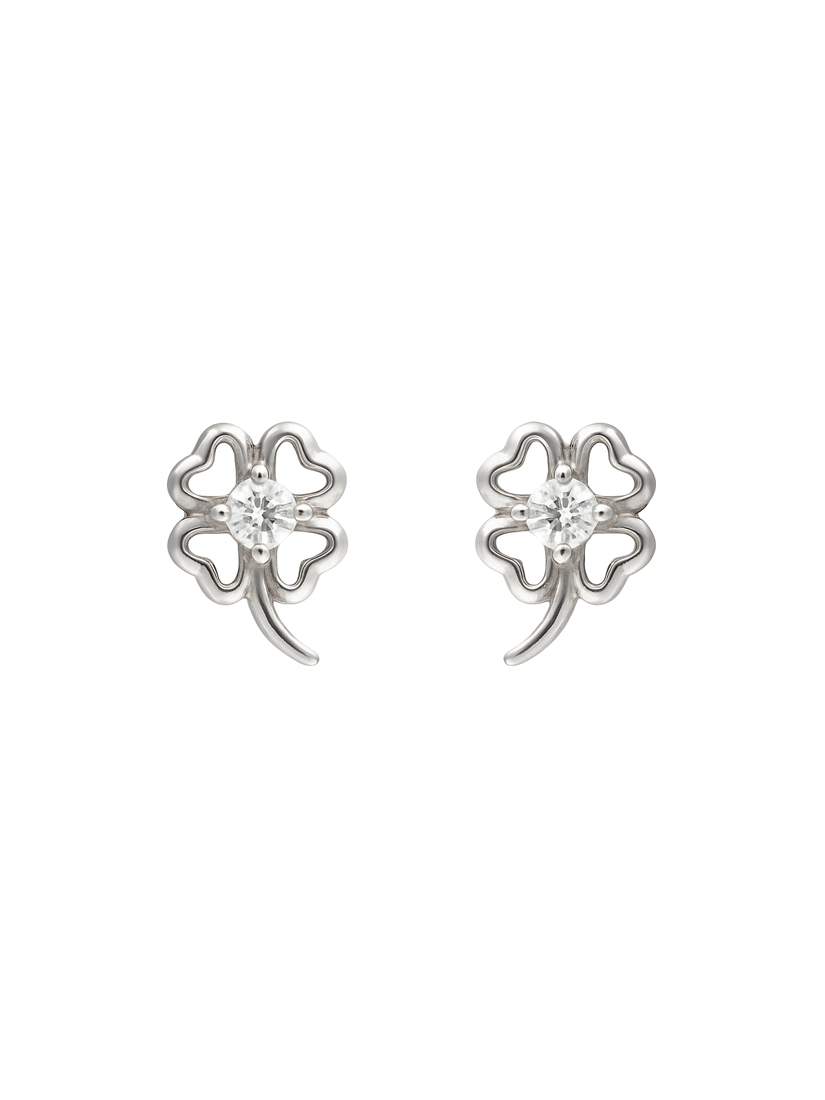 Pendientes con forma de trebol decorados con circonitas, de Plata de Ley 925 mm.