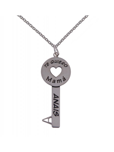 Colgante Llave Mamá Personalizado con Corazón en Plata de Ley 925