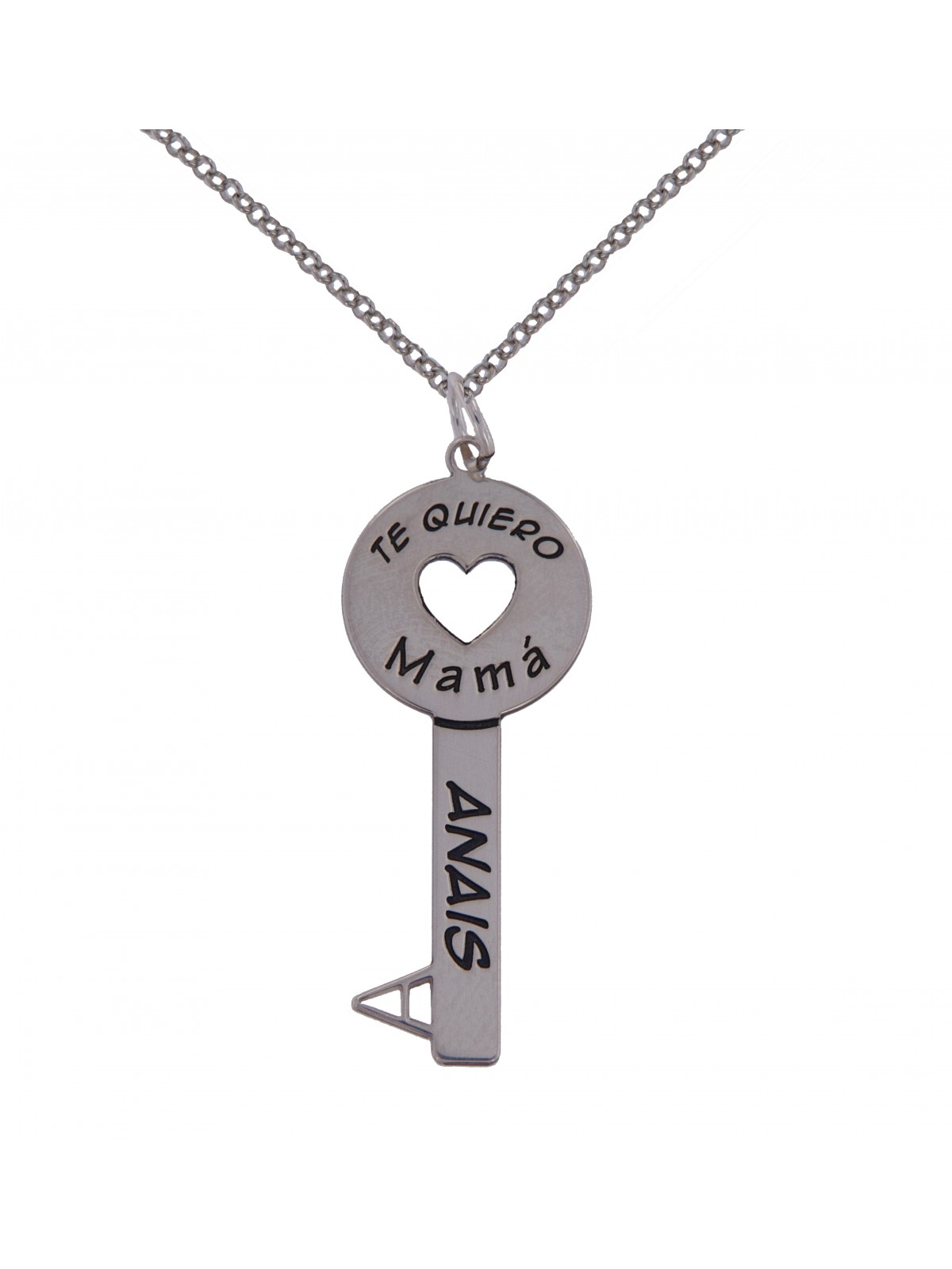 Colgante Llave Mamá Personalizado con Corazón en Plata