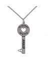 Colgante de plata con forma de llave, un símbolo de amor, protección y unión, diseñado con un delicado corazón calado en su interior y rematado con una inicial que le aporta un carácter único y personal.