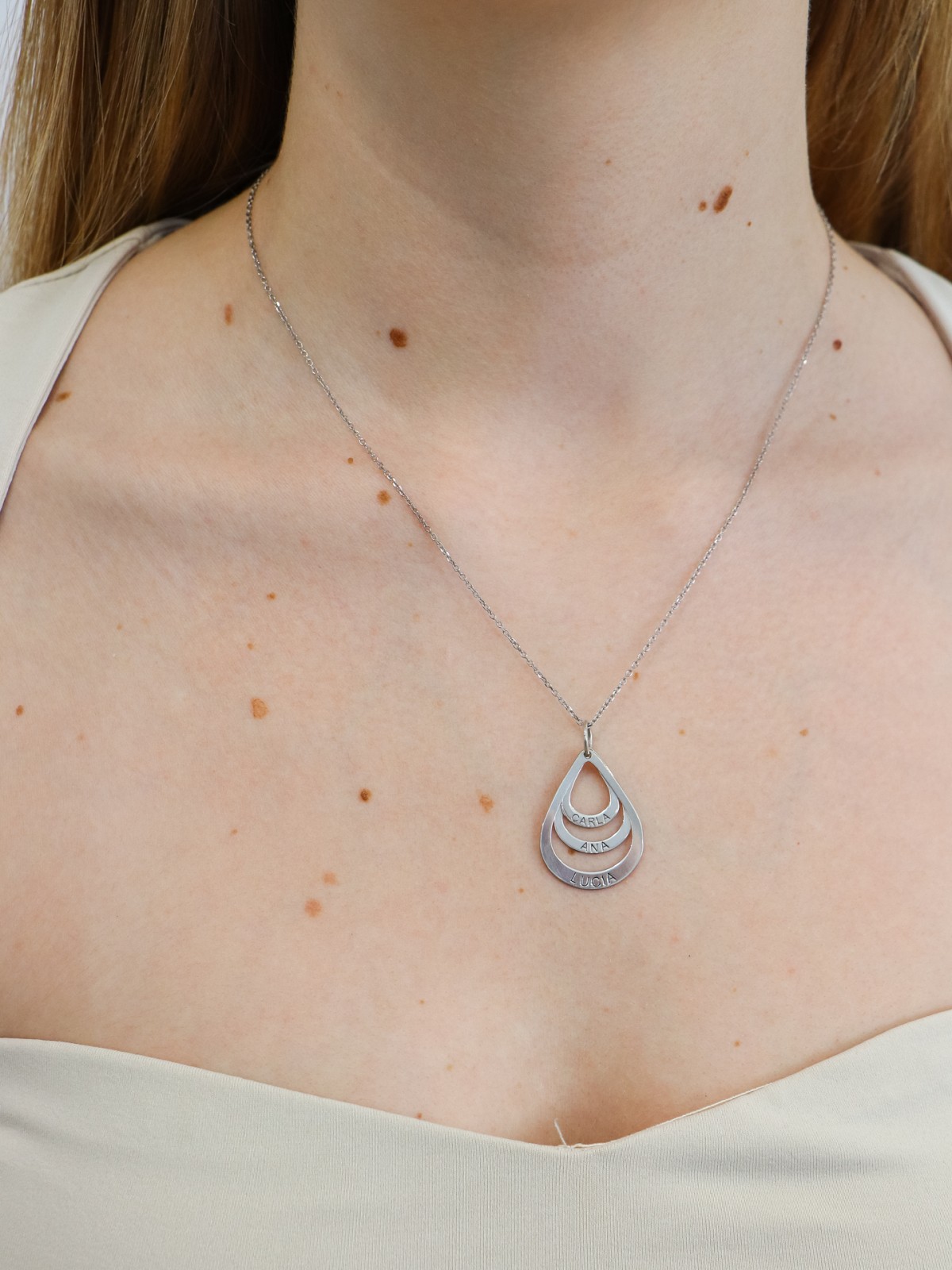 Colgante Gota Multicapas Personalizado con Nombres en Plata