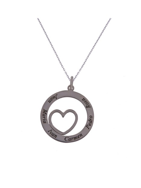 Colgante personalizado circular en Plata de Ley 925, una joya fina, elegante y cargada de significado, diseñada para mantener siempre cerca a las personas más importantes de tu vida. Su delicado aro con corazón calado en el centro simboliza amor, unión y vínculo eterno, convirtiéndolo en una pieza atemporal y profundamente emocional.