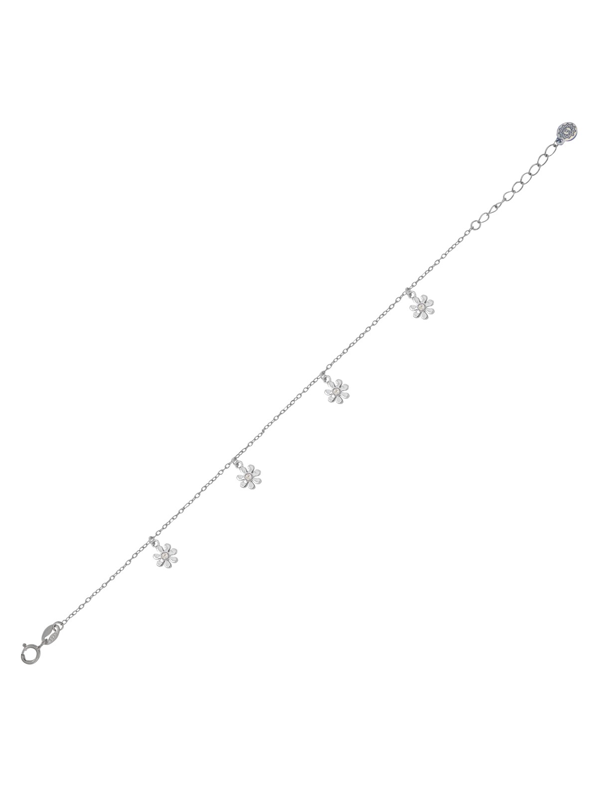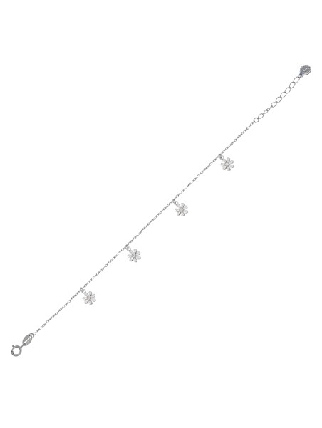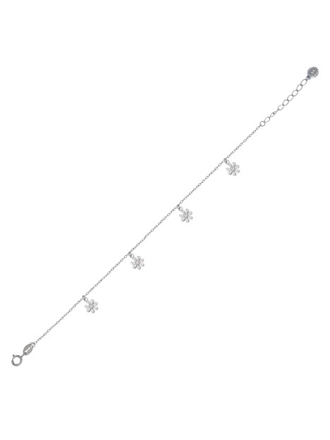 Pulsera de cadenita delgada, con unos detalles de florecitas en Plata Lisa de Primera Ley 925.